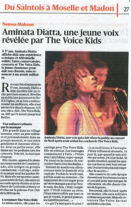 Aminata Diatta, jeune voix révélée par The Voice Kids et élève du Lycée Pierre de Coubertin Nancy !