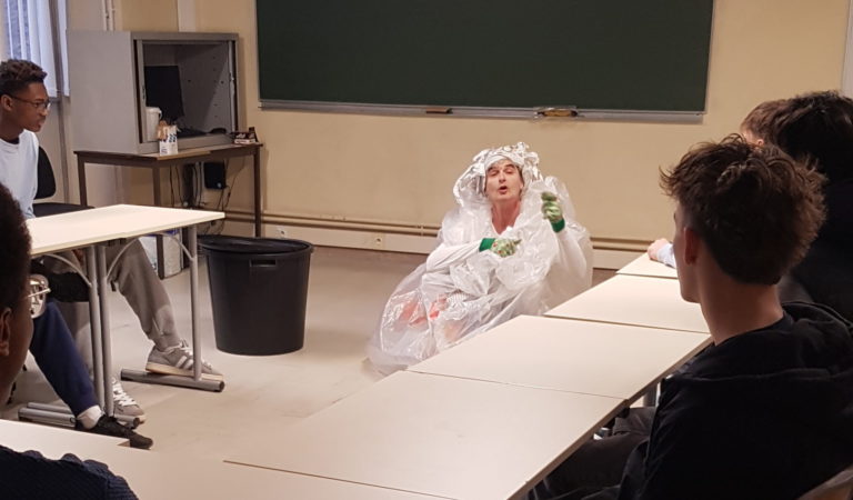 Les classes de 1ère STMG et STI2D ont assisté à une représentation sensibilisant sur la gestion des déchets et la consommation.